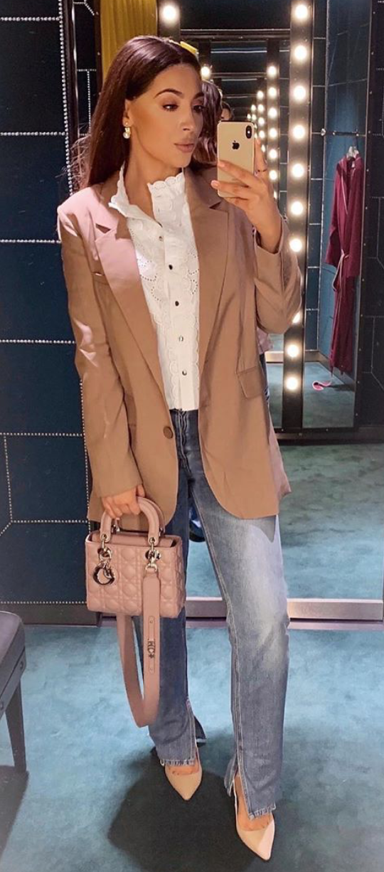 Shop the look: Blazer: {similar}{similar} Top: {here}{similar} Jeans: {similar}{similar}{similar}Bag: My ABCDior Lady Dior Bag {here} Shoes: J’Adior Nude Pump: {here}